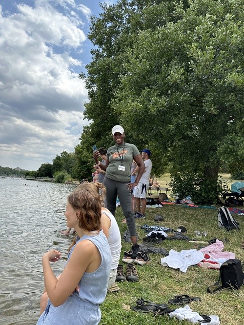 "WOW! What a day for me! We walked and hiked to a reservoir to swim. It was interesting to see the interaction with Christians and non-Christian people. It made me think about the conflict that is universal with our walk with Jesus and the battle with the flesh!"